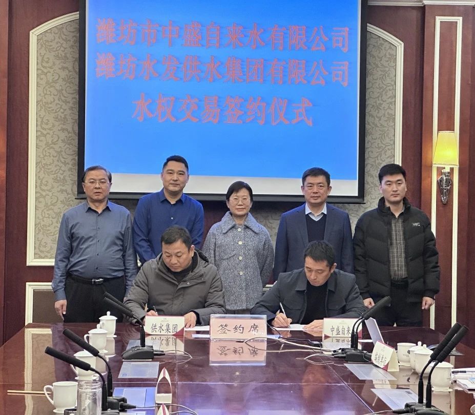 1月2日,濰坊水發(fā)供水集團有限公司與濰坊市中盛自來水有限公司舉行水權(quán)交易簽約儀式,標志著山東省首例跨區(qū)域取水權(quán)交易成功落地,是深入推進水權(quán)改革的標志性成果。省水利廳水資源處一級調(diào)研員題偉,濰坊市水利局黨組成員、市水利事業(yè)發(fā)展中心主任韓俊清,峽山區(qū)、濱海區(qū)水利局負責人參加評審并見證交易簽約儀式。