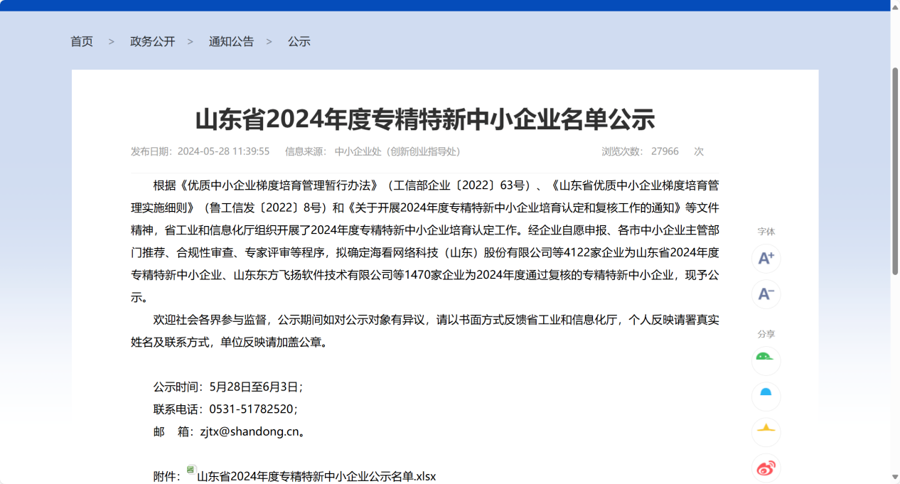 近日,山東省工業(yè)和信息化廳公示了山東省2024年度專(zhuān)精特新中小企業(yè)名單。經(jīng)自評(píng)申報(bào)、市級(jí)審核推薦、省級(jí)專(zhuān)家評(píng)審等程序,山東水發(fā)黃水東調(diào)工程有限公司進(jìn)入公示名單,順利通過(guò)山東省2024年度專(zhuān)精特新中小企業(yè)認(rèn)定。