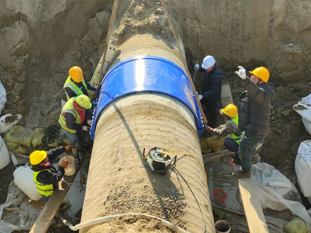 情況緊急,發(fā)現(xiàn)漏水后,工程管理部搶修人員以最快的速度奔赴現(xiàn)場(chǎng),仔細(xì)檢查上下游閥門,憑借豐富經(jīng)驗(yàn)和專業(yè)技術(shù),初步鎖定管線破損的位置與深度??蛻舴?wù)部第一時(shí)間將漏水情況向建設(shè)交通局報(bào)告,并積極協(xié)調(diào)現(xiàn)場(chǎng)開挖工作,爭(zhēng)分奪秒推動(dòng)搶修進(jìn)程。與此同時(shí),供水調(diào)度中心發(fā)揮著“智慧大腦”的作用,迅速調(diào)配惠澤水廠對(duì)第一、第三供水管線進(jìn)行精細(xì)調(diào)節(jié),精準(zhǔn)關(guān)閉第四供水管線破損位置的上下游閥門,一場(chǎng)保障居民用水不受影響的“戰(zhàn)役”就此打響。 搶修人員先對(duì)管體保護(hù)層進(jìn)行打磨,如同給受傷的“血管”清創(chuàng),再均勻地涂抹上搶修劑修補(bǔ)創(chuàng)口,最后用定制的哈夫節(jié)緊緊包裹。完成修復(fù)后,在管底鋪上厚厚的碎石墊層,給管道安上了一個(gè)穩(wěn)固的“床墊”,確保其在注水后穩(wěn)穩(wěn)當(dāng)當(dāng),不會(huì)沉降。這種方法相較于傳統(tǒng)的拔管、換管方式,不僅降低了成本,還大幅縮短了工期,為盡快恢復(fù)供水爭(zhēng)取了寶貴時(shí)間。 搶修人員全力以赴,輪流作業(yè),經(jīng)過(guò)近30個(gè)小時(shí)的連續(xù)奮戰(zhàn),終于完成修復(fù),管道再次流淌著清澈的水流,用戶的用水需求得到了堅(jiān)實(shí)保障。 參與搶修的每一位員工都是守護(hù)用水安全的衛(wèi)士,他們用行動(dòng)詮釋著水發(fā)人的擔(dān)當(dāng)精神,也收獲了廣大用戶的高度認(rèn)可。下一步,供水集團(tuán)將不斷提升服務(wù)質(zhì)量,為濱海區(qū)企業(yè)、居民用水保駕護(hù)航。